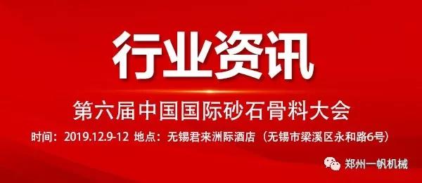 2019年12月9-12日在江蘇無錫即將召開“第六屆中國國際砂石骨料大會”,會議以”生態 融合 品質 共享”為主題,旨為加強各國砂石骨料行業的交流與合作,助力優化全球砂石資源配置,推動砂石骨料工業的轉型升級、綠色發展和高質量發展,鄭州一帆機械作為中國砂石協會會員單位也受邀參加會議,屆時將有砂石行業相關領域專家、學者以及各國相關協會和企業代表與會,共同學習交流,探討砂石骨料行業未來發展之路。