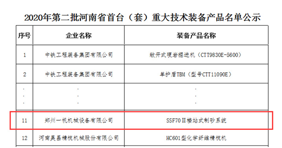 首臺(套)重大技術裝備是指經過創新,其品種、規格或技術參數等有重大突破,具有知識產權但尚未取得市場業績的首臺(套)或首批次的裝備、系統和核心部件。鄭州一帆機械SSF系列高品質制砂樓系統被評為“河南省首臺套重大技術裝備”,這是對公司科技創新能力和先進技術的雙項認可。