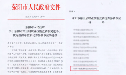 5、2021年2月,榮獲“滎陽市第三屆職業技能競賽優秀參與單位”。