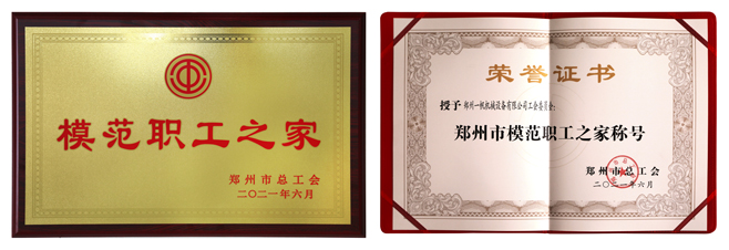 7、2021年8月,被鄭州市總工會認定為“鄭州市模范職工之家”稱號。