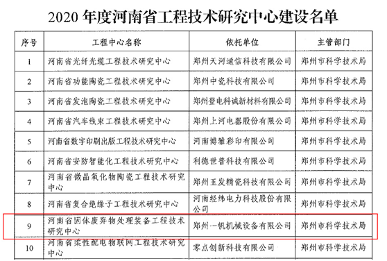 13、被認定為河南省固體廢棄物處理裝備工程技術研究中心。