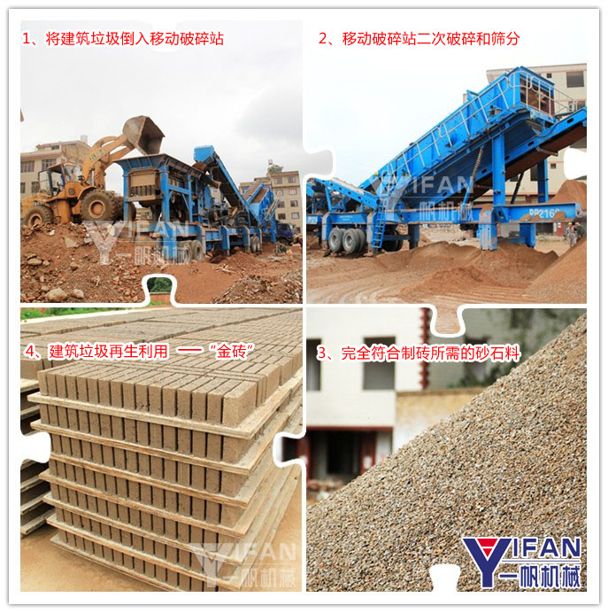 導讀: 該建筑垃圾處理廠位于云南昆明,這是鄭州一帆機械公司在今年3月份簽訂的一個項目客戶。根據我們售后的跟蹤了解,該移動式建筑垃圾處理設備每天可處理垃圾250噸至300噸,可日產免燒磚8萬到10萬片。